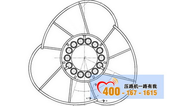可以看出,32kj沖擊式壓路機zui多可設計排放14組減震器(減震器不能緊挨,至少要預留2~3公分,給減震器外置部分提供受力膨脹的位置),所以,并沒有足夠的位置空間排放下20組套減震器。