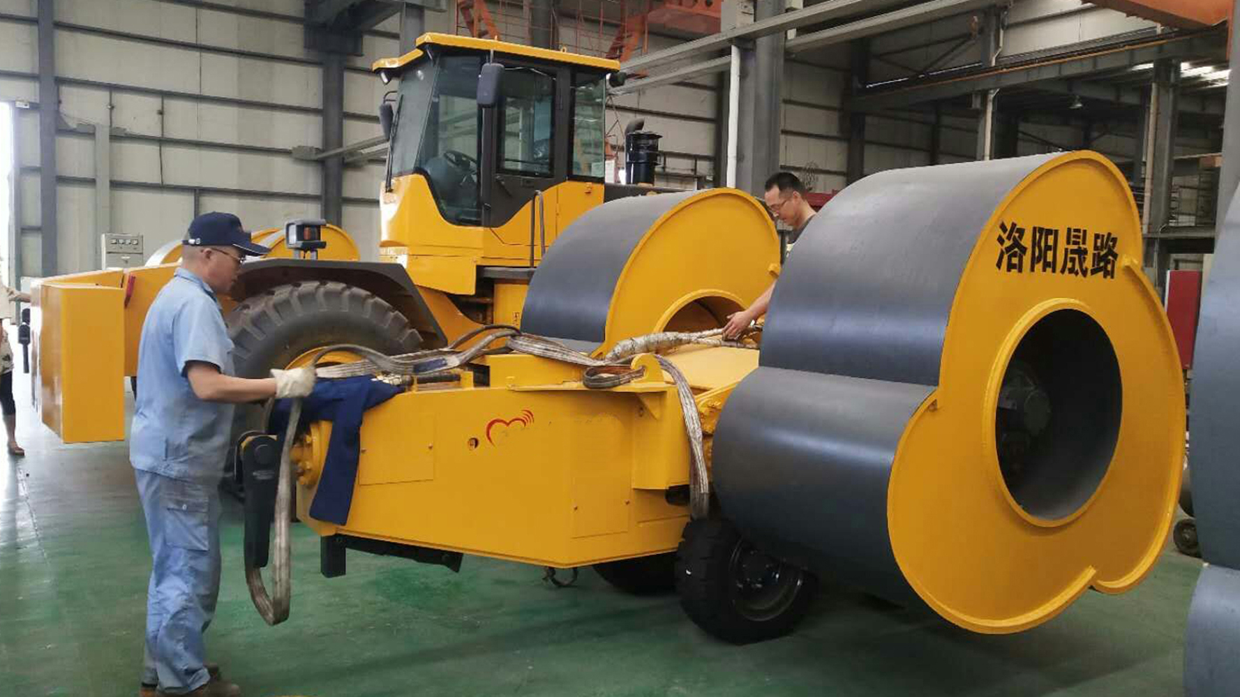 沖擊壓路機(jī)車間吊裝發(fā)貨現(xiàn)場(chǎng)