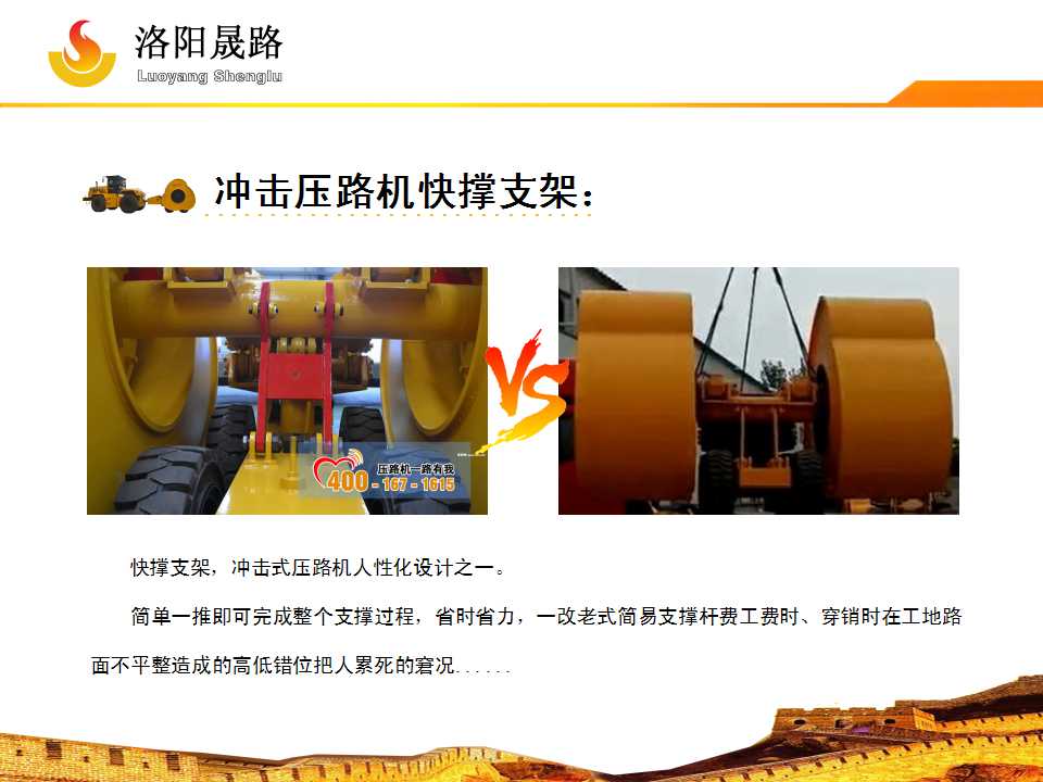 而快撐支架,更是沖擊式壓路機(jī)人性化設(shè)計(jì)之一。簡(jiǎn)單一推即可完成整個(gè)支撐過程,省時(shí)省力,大量施工經(jīng)驗(yàn)也表明:老式簡(jiǎn)易支撐桿費(fèi)工費(fèi)時(shí)。