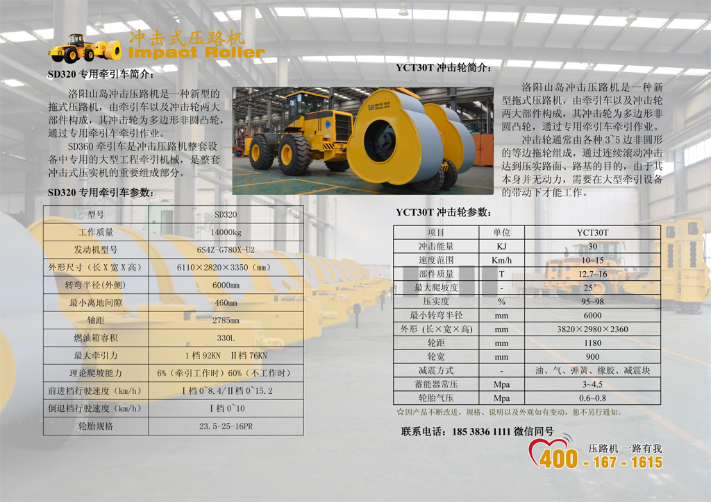 SL320/310專用牽引車+SL30T/SL25T沖擊壓實(shí)輪,基本配置及參數(shù)見下:
